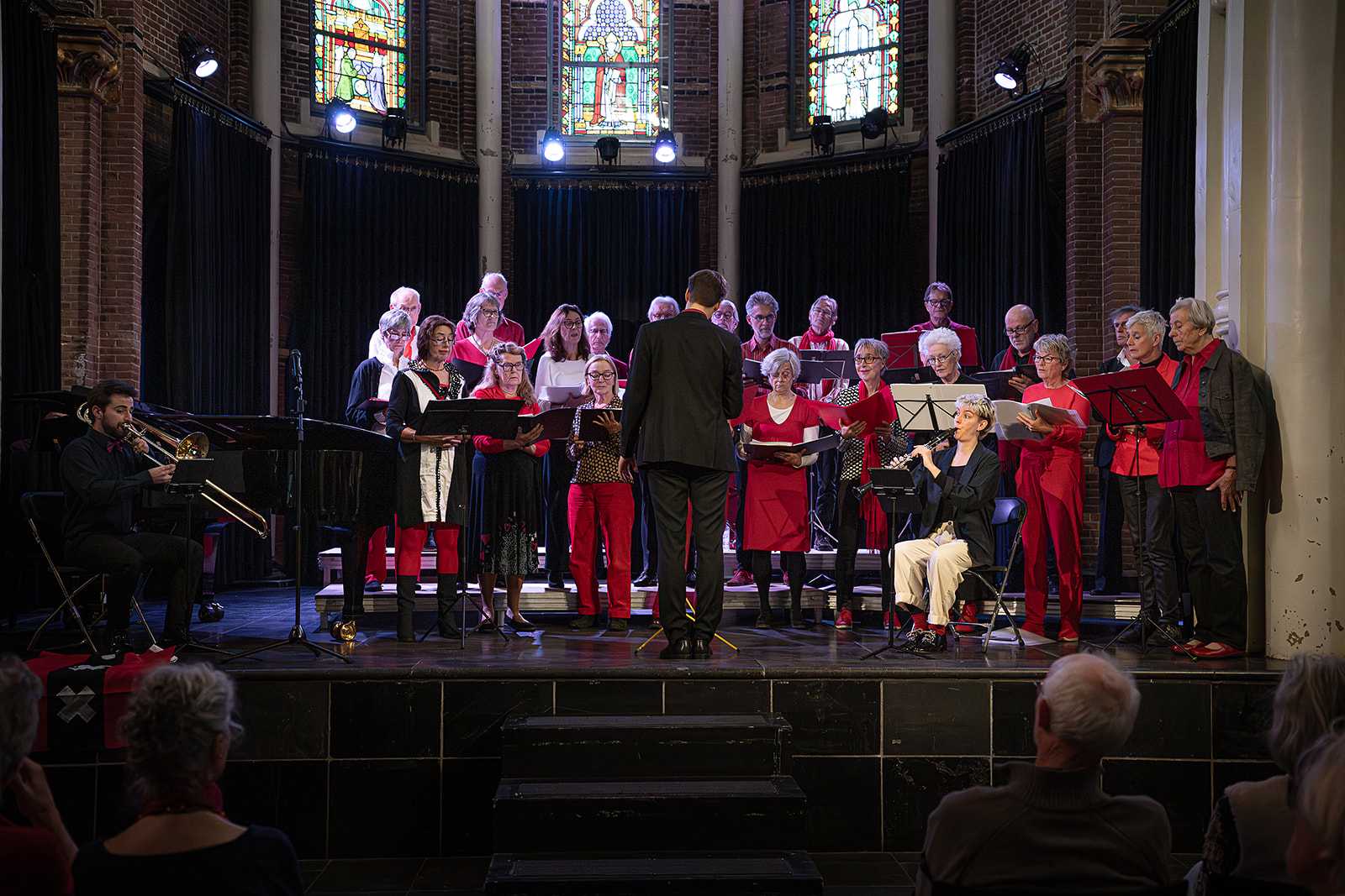 Op 9 november zongen we een compilatie van ‘Cantates Amsterdam’ uit 1987, van Jan van Zelm, de première van een nieuw stuk van Nuno Lobo en hedendaagse liederen over Amsterdam. Alle zang werd op piano begeleid door Antonio Biancaniello. Het concert was uitverkocht en het publiek was vol lof over ons concert. Fijn om dat te ervaren. De foto’s zijn van @BoyHazesfotografie.